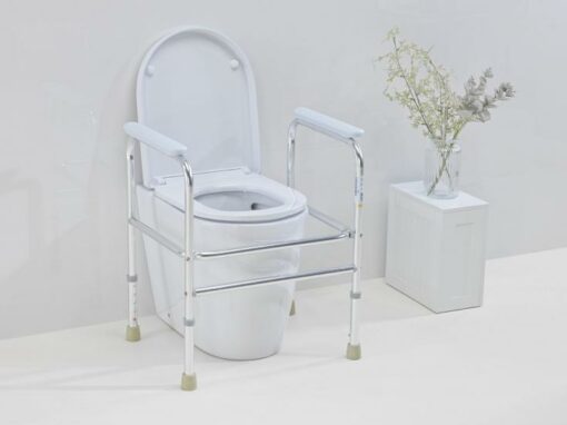 It has an easy to operate flip-down armrests and a height-adjustable frame for improved support while in the toilet.