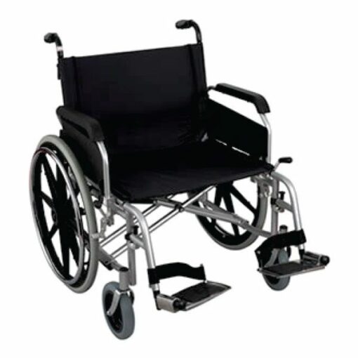 Size: 22″, 24″, 26″ Seat Depth: 18″ Frame: Reinforced Powder Coated Mild Steel Footrest: Removable Upholstery: Black Reinforced Nylon Load Capacity: 145kg – 180kg Optional: Elevating leg rest Dimensions L110 W55 H95 Weight 25kg