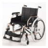 Foldable, lightweight wheelchair with height-adjustable & flip back armrests. Quick-release rear wheels & detachable footrests.